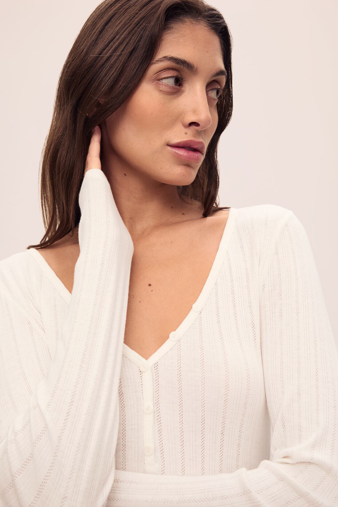 Pointelle V Neck Henley