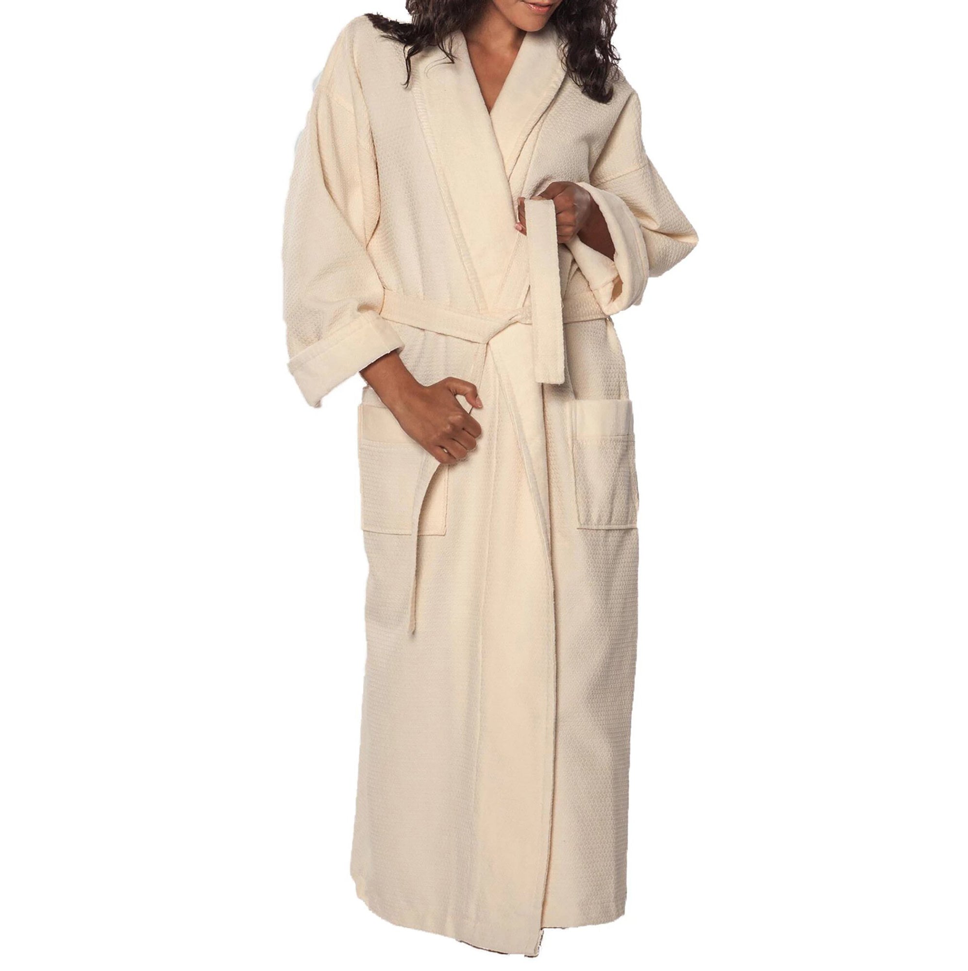 DESCRIPTION Introduction: Most popular in Five-Star hotels and spas, this lightweight bathrobe offers both comfort and functionality. Then you add a Velour Shawl Collar and you have luxury! Whether you are getting ready for an event or relaxing by the pool, the crisp lines and anti-wrinkle material are ideal. Product Description: Our Diamond Pattern Waffle Shawl bathrobes are woven with 100% Quality Turkish Cotton. It’s lightweight material is great for comfort and modesty while the hatched, diamond pattern lets your body breathe.MADE IN TURKEY. Product Features: Double belt loop for height adjustment Belt included Deep, double-stitched pockets Hanger loop Specifications: 100% Turkish Cotton Double stitching for durability Washing Instructions:Machine wash cool, separately. Non-chlorine bleach. Tumble dry low. Size Chart: Model is 5’11”, 135lbs and wears One Size. Size One Size (L) Length 52 Sweep 60 Sleeve 20 Cuff 8.5 Armpit 12