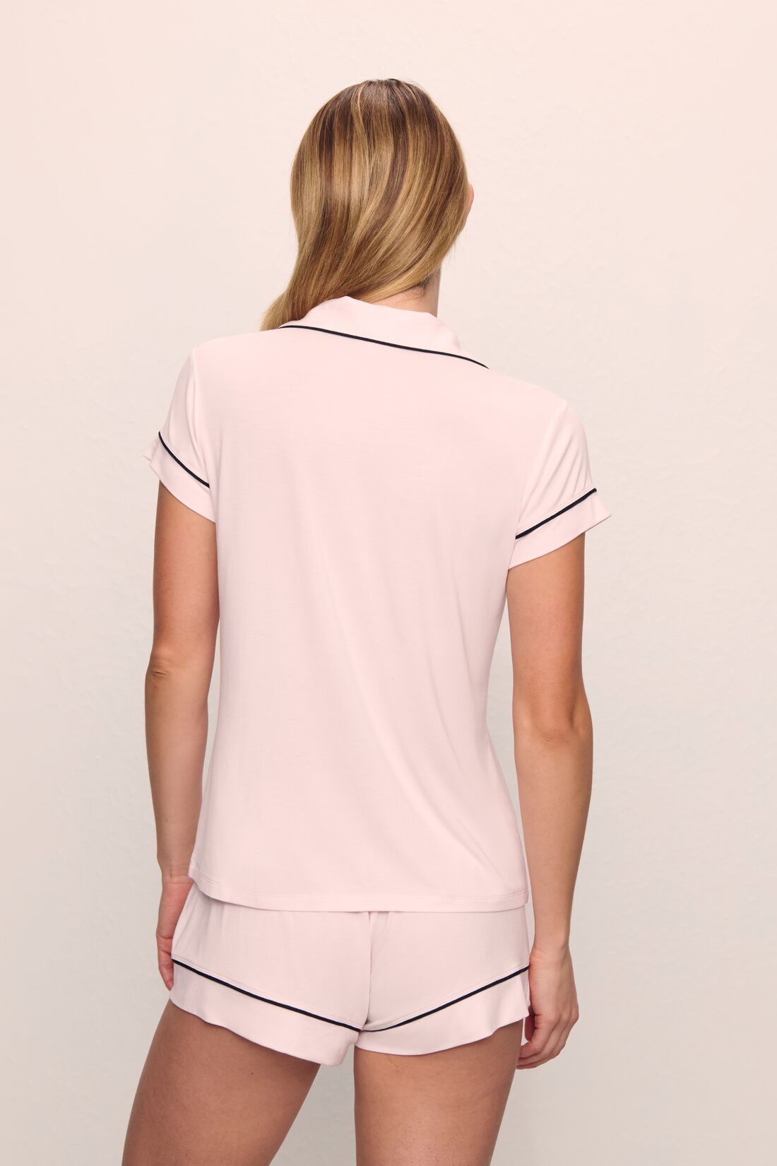 The PJ that started it all. Made from TENCEL™ Modal fibers and a touch of elastane, this buttery soft fabric is verified by OEKO-TEX® Standard 100, meaning it’s dyed with safe and non-toxic dyes. This cheeky set is perfect for hot sleepers and warm nights, featuring a low-rise cheeky short with a thin elastic waistband, a classic slim-fit short sleeve top, button-front design with a notch collar, a functional pocket, and contrast piping for a polished finish. Pairs well with our everyday lingerie and blissful ZZZ’s.