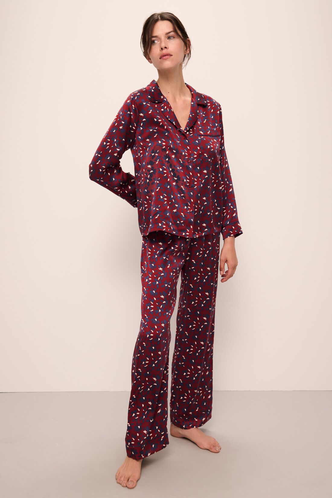 A dream to wear and a dream to wash. Made from 100% mulberry silk, our fabric is produced using bluesign®-certified processes and verified by OEKO-TEX® Standard 100, meaning it is processed without harmful chemicals or dyes in a mill that prioritizes safe and non-toxic practices. It’s hypoallergenic and thermoregulating, offering comfort year-round. This set features a relaxed long-sleeve button-up top with a notch collar and high-rise straight-leg pants with an elastic waistband. Pairs well with our everyday lingerie and Sherpa Slippers.