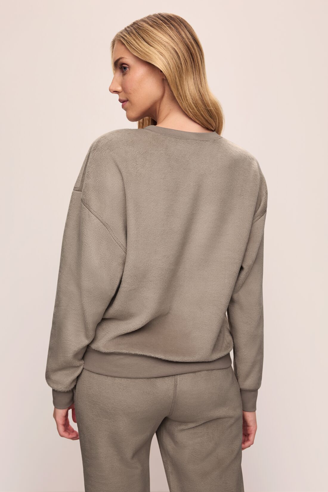 Flip it and reverse it. Made from Recycled Polyester and Cotton, this cozy fabric is verified by OEKO-TEX® Standard 100, which means it was processed without harmful chemicals. This reversible sweater-weather staple features a comfortable fit, a drop shoulder, a jersey neckband, cuffs, and a bottom band. Complete the look with the matching Reversible Plush Jogger or High Waist Pant.
