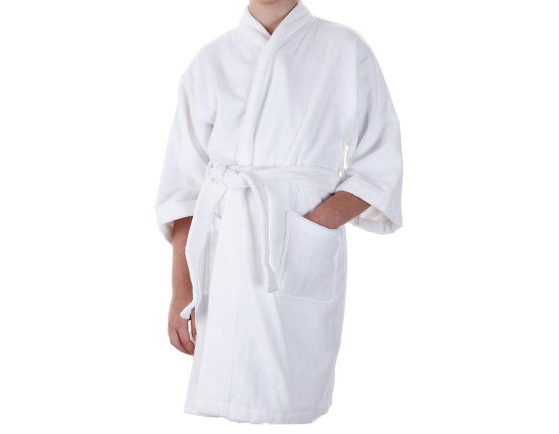 Offer leisure for the whole family — Waffle-Weave Kimono kid’s robe is a luxury for the little ones. Made of 100% combed cotton velour, this robe is both soft and easy to clean. Features double belt loops for adjustable belt height and a hanger loop for convenient storage. Available in a kids’ large size.