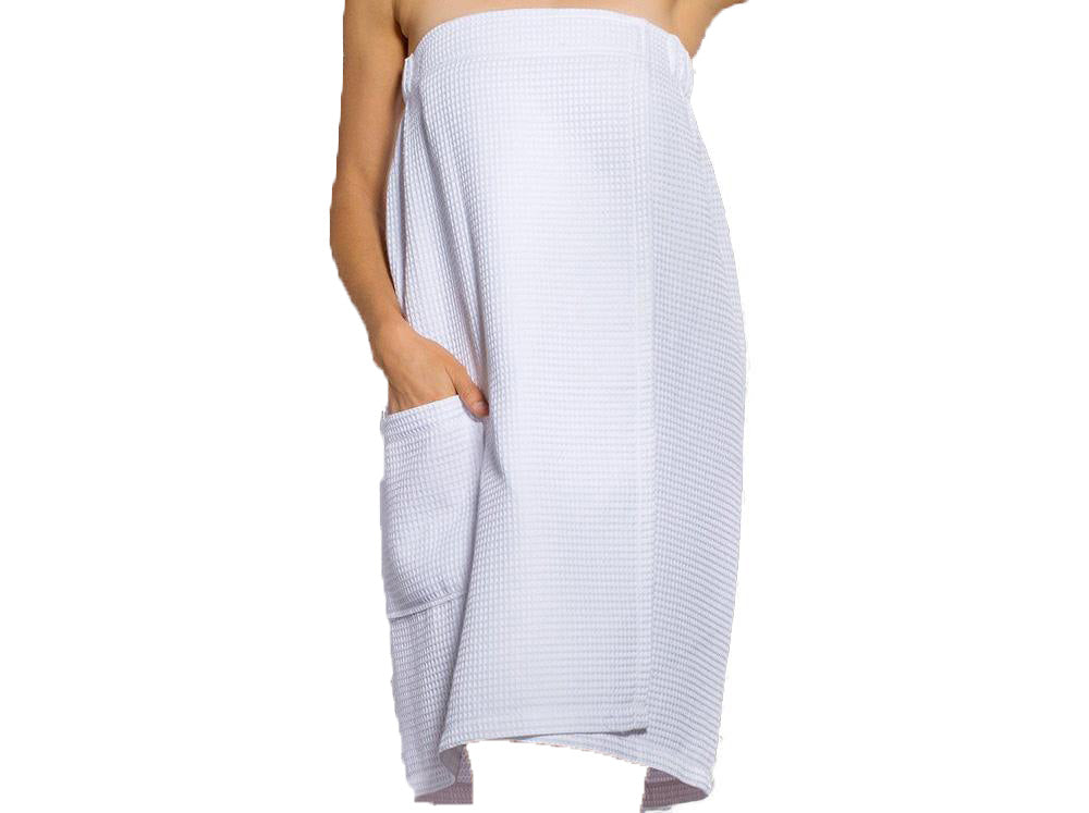 Description Spa wraps or bath wraps are the ideal companion whether you’re lounging in the steam room or in your bedroom. Wraps don’t have sleeves or belts. Instead, they secures with 3 snaps for an adjustable fit. Elastic also helps keep your wrap snug and secure while you move around. No more embarrassing moments fumbling with a towel! Men’s wraps secure at the waist and cover to the mid-calf, while women’s secure above the chest and stop just below the knee. Men’s wraps are available in white or black and in either Velour or Basic Waffle. Women’s wraps are available in white, black, pink, or ecru in Velour, Basic Waffle, Knit Waffle or Microfiber. Features Velour: 100% combed cotton Microfiber: 100% polyester microfiber Waffle: 67% cotton / 33% polyester waffle Men’s Wraps: 24″ long (available in white and black) Women’s Wraps:32″ long (available in white, black, ecru and pink) Wraps available in larger sizes